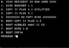 Disk Muncher 1.1, Copy II Plus 4.1, Copy II Plus 3.1, Copy II Plus 4.3, Nibbles Away II C3, Echo 1.0